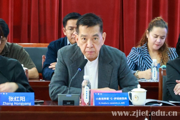 菲律宾职业技术教育与培训联合会主席Fr. Onofre G. Inocencio Jr.,中菲丝路学院基金会主席张红阳,学校党委委员、副校长林锋出席会议并致辞。菲律宾职业技术教育与培训联合会专家,全国新一代计算机应用行业产教融合共同体成员单位成员,学校商务智能学院和国际交流与合作中心教师参加研讨。会议由商务智能学院院长胡坚主持。